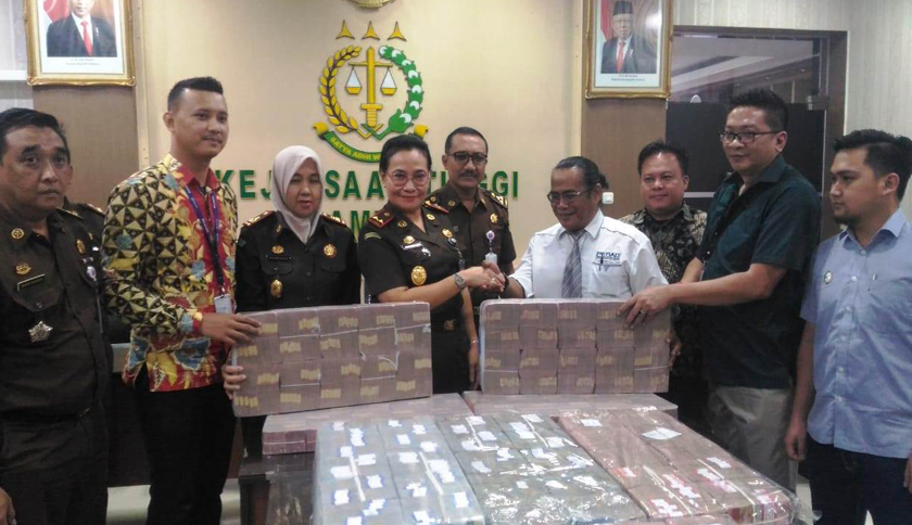 Kuasa Hukum Sugiharto Wiharjo menyerahkan uang ke Kejaksaan Tinggi. Foto: Oscar Sihotang/Kupas Tuntas
