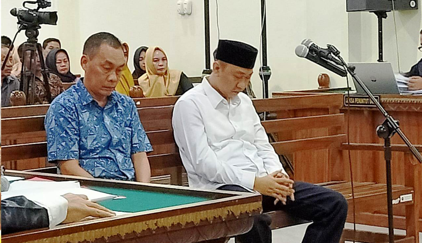 Agung Ilmu Mangkunegara dan Raden Syahril di Pengadilan Tipikor Tanjungkarang, Senin (24/2/2020). Foto: Oscar/Kupas Tuntas