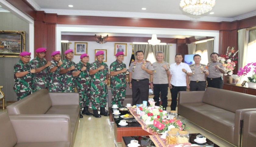 Komandan Brigade Infateri 4 Marinir/BS Kolonel Marinir Nawawi S.E., M.M bersilaturrahmi ke Kapolda Lampung, Irjen Pol Drs. Purwadi Ariyanto M.Si di Mapolda Lampung, Selasa, (25/02/2020).Foto:Ist