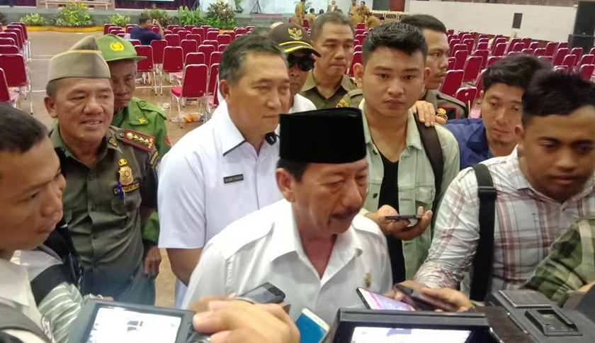 Wali Kota Bandar Lampung Herman HN saat diwawancarai awak media di GSG Unila, Rabu (26/2/2020). Foto: Sri/Kupas Tuntas