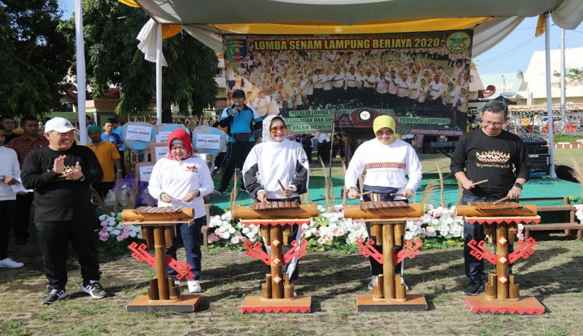 Bandar Lampung-Sebanyak 48 Organisasi Perangkat Daerah (OPD) di lingkungan Pemerintah Provinsi Lampung mengikuti lomba Senam Lampung Berjaya 2020 yang dibuka Ketua Tim Penggerak (TP) PKK Provinsi Lampung, Riana Sari Arinal di Lapangan Korpri Kantor Gubernur Lampung, Jumat (6/3/2020).