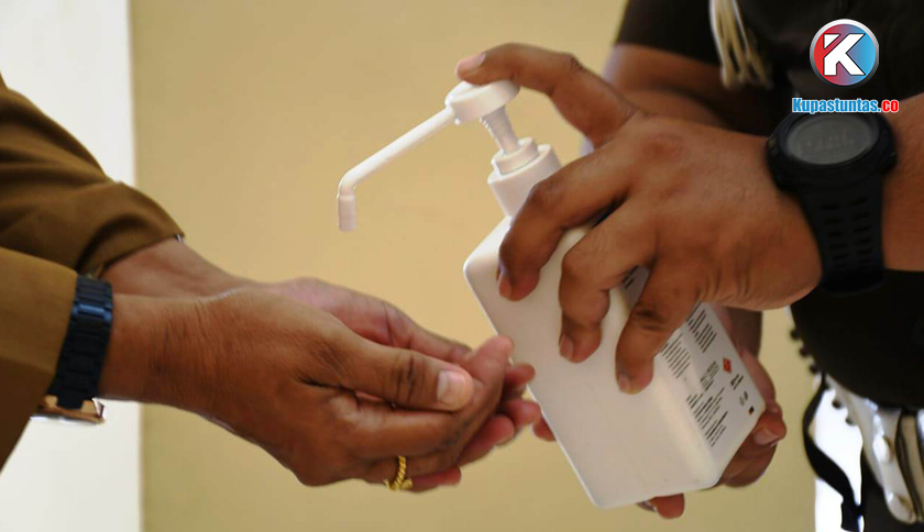 Bandar Lampung- Cegah Penyebaran Virus Corona, Pemkot Balam Lakukan Pemeriksaan Suhu dan Penyemprotan Anti Septic ke pegawai pemerintahan yang ikut serta dalam rapat bersama Walikota Bandar Lampung Herman HN, di gedung Semergou Pemerintahan Kota Bandar Lampung, Senin (16/03/2020).