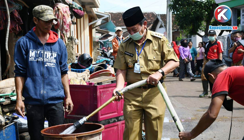 Walikota Bandar Lampung, Herman HN saat meninjau lokasi Banjir di kelurahan keteguhan kecamatan TBT, Selasa (31/03/2020). Foto: Sulaiman/Kupastuntas.co