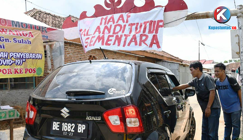 Dari pantauan Kupastuntas.co di lapangan, warga membangung posko dipintu masuk kampung, dan menghentikan kendaraan baik roda dua dan empat yang ingin masuk perkampungan tersebut yang kemudian kendaraan disemprotkan Disinfektan diwajibkan menyemprot tangan dengan antiseptic.