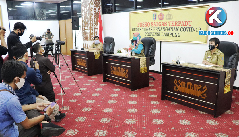 Wagub Nunik saat konfrensi pers di Posko Gugus Tugas Covid-19 di Balai Keratun Pemprov Lampung, Senin (13/04/2020). Foto: Tampan/Kupastuntas.co