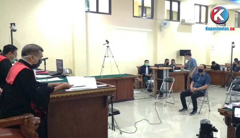Sidang lanjutan kasus fee suap proyek Lampung Utara dengan saksi Sekretaris BPPRD Lampura, M. Ridho Al Rasyid, Kamis (16/4/2020). Foto: Oscar/Kupastuntas.co