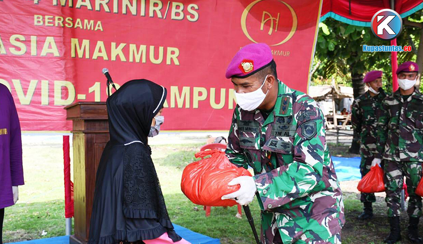 Bandar Lampung - Brigadir Infantri (Brigif) 4 Marinir/BS bersama PT Asia Makmur menyalurkan 14.000 paket sembako ke pulau-pulau terpencil dan daerah-daerah pelosok yang berada di Kabupaten Pesawaran, Senin (20/04/2020).