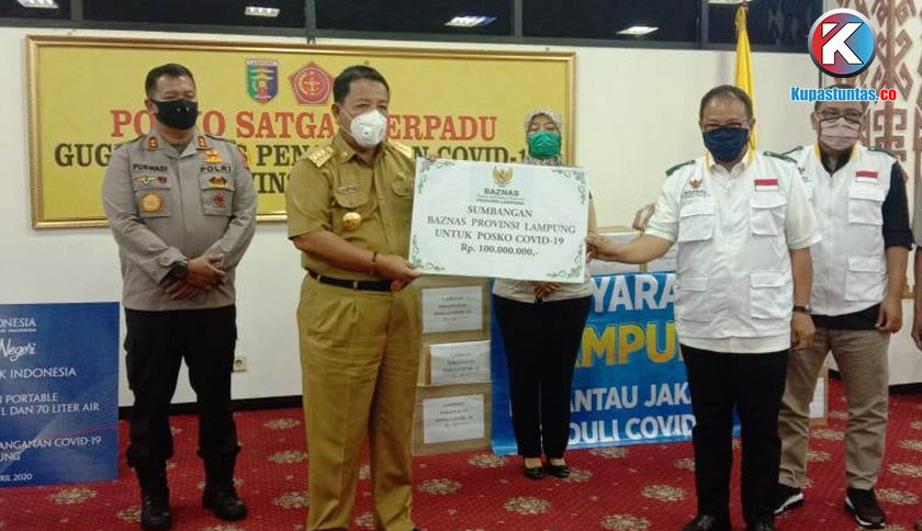 Bandar Lampung - Sebagai bentuk kepedulian terhadap penanganan Covid - 19 di Provinsi Lampung, Badan Amil Zakat Nasional (Baznas) Provinsi Lampung memberikan bantuan berupa uang tunai sebesar Rp. 100 juta.