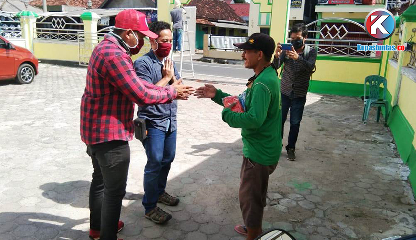 Ketua IJTI dan Sekretari IJTI Lampung saat memberikan masker di salah satu masjid di Bandar Lampung, Rabu (22/04/2020). Foto: Sulaiman/Kupastuntas.co