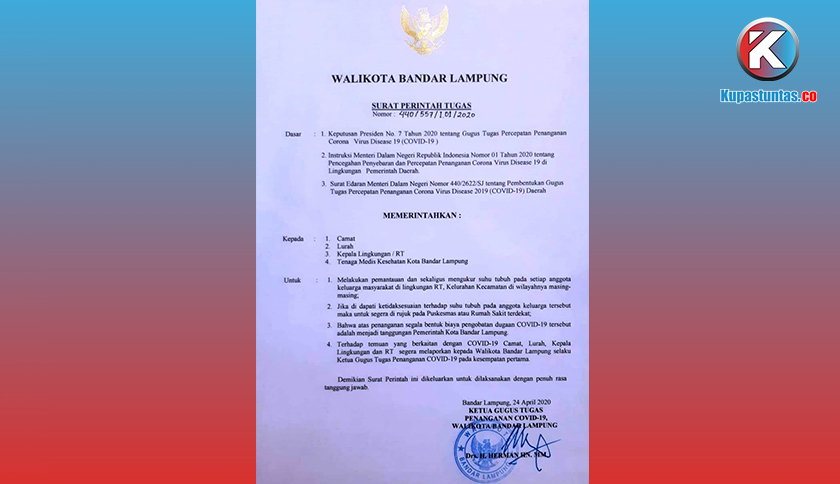 Baca Juga: Walikota Bandar Lampung Keluarkan SPT Untuk Camat dan Tim Kesehatan, Sudah 3 Hari Kok Belum Jalan?