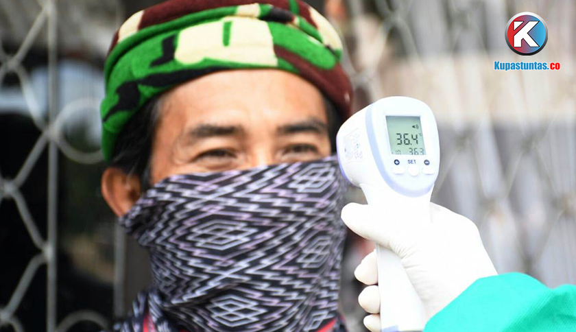 Pengecekan Suhu Tubuh kepada Warga di Kelurahan Rawa Laut kecamatan Enggal Bandar Lampung, Sebin (27/04/2020). Foto: Sulaiman/Kupastuntas.co