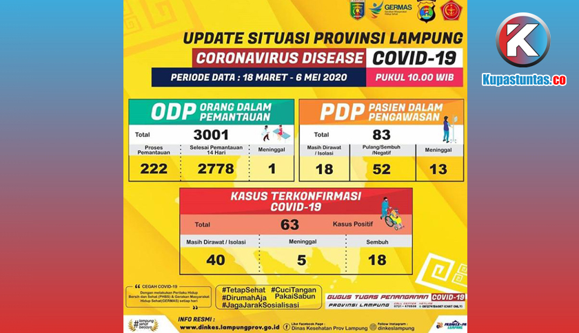 Bandar Lampung - Pemerintah Provinsi Lampung melalui Dinas Kesehatan Provinsi Lampung kembali merilis data perkembangan Coronavirus disease (Covid - 19) di Bumi Ruwa Jurai, Rabu (6/5/2020).