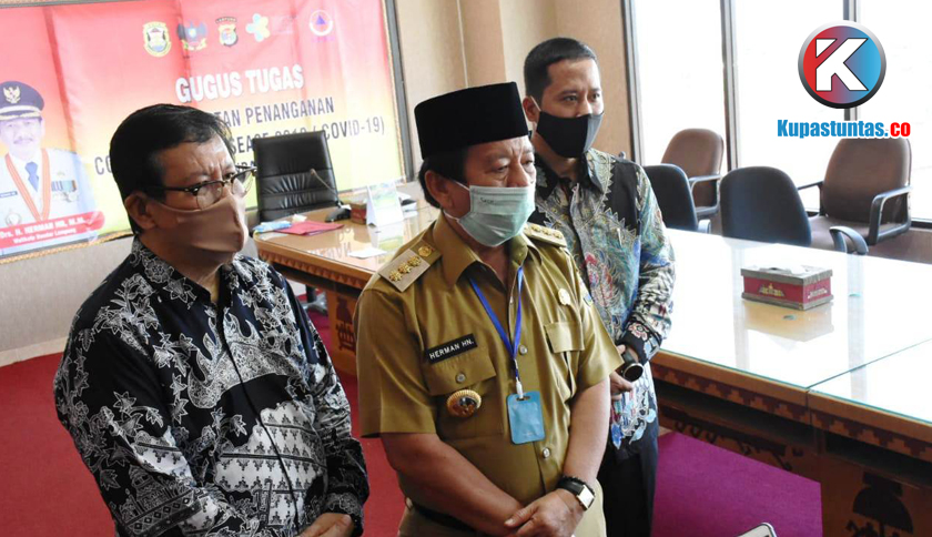 Walikota Bandar Lampung Herman HN saat ditemuin usai menerima bantuan sembako dari Universitas Teknokrat, Senin (11/05/2020). Foto: Sulaiman/Kupastuntas.co