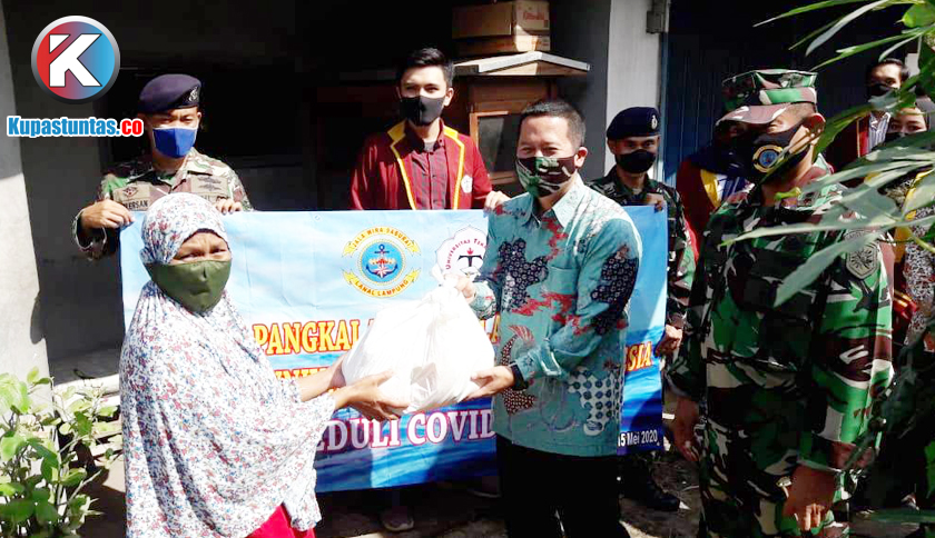 Penyerahan sembako dilakukan oleh Ketua Yayasan Pendidikan Teknokrat Dr. H. Mahathir Muhammad, Komandan Lanal Lampung Kolonel Marinir Amrul Adriansyah dan Direktur Utama Kupas Tuntas, Donald Harris Sihotang.