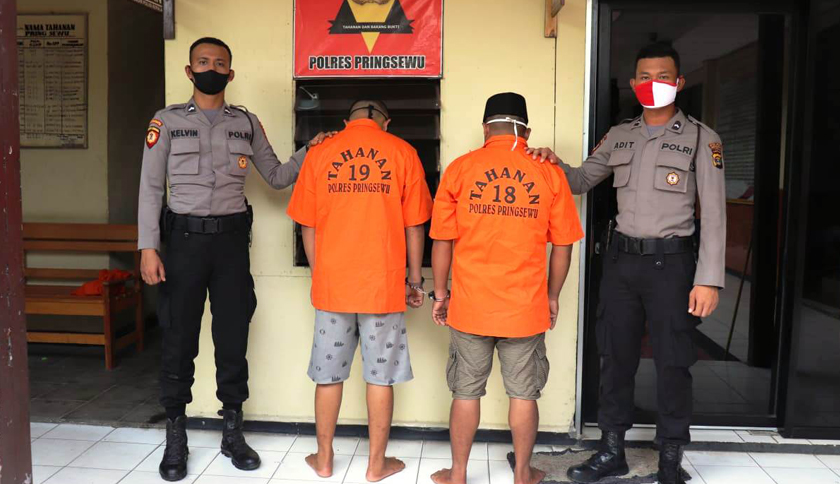 Kedua pelaku saat diamankan di Polres Pringsewu. Foto: Rifaldi/Kupastuntas.co