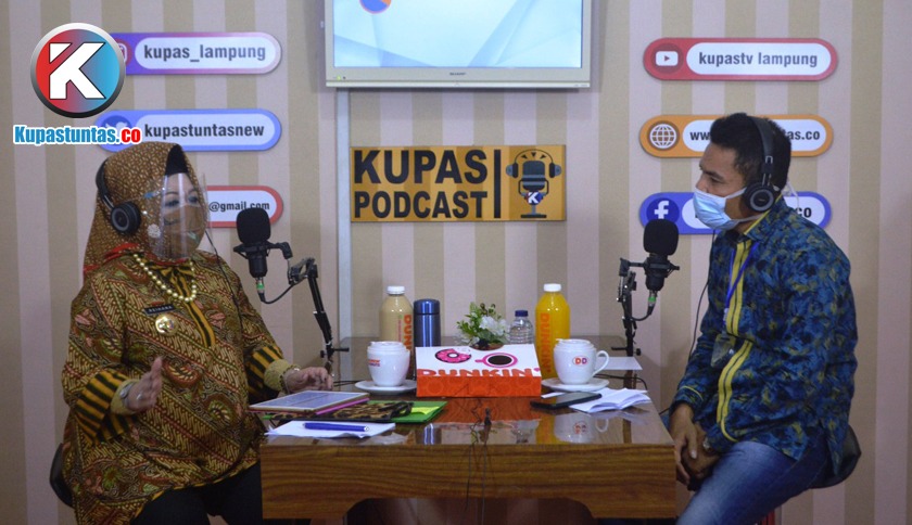 Kepala Dinas Kesehatan Provinsi Lampung Reihana dan Direktur Utama Kupas Tuntas Donald Harris Sihotang saat diskusi dalam program Kupas Podcast yang berlangsung di Studio Podcast Kupas Tuntas, Jumat (26/6/2020). Foto: Erik/kupastuntas.co