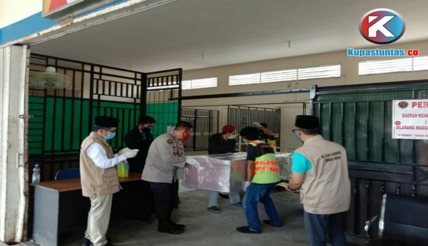 Jenazah ABK atas nama Hasan Apriadi (20) tiba di Terminal Kargo UPBU Bandara Radin Inten II, Jumat (17/7/2020) sekitar pukul 14.23 WIB. Foto: Siti/Kupastuntas.co