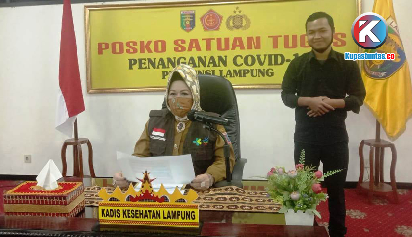 Juru Bicara posko satuan tugas penanganan Covid-19 Provinsi Lampung, Reihana, saat memberikan keterangan, Selasa (27/7/2020). Foto: Doc/Kupastuntas.co