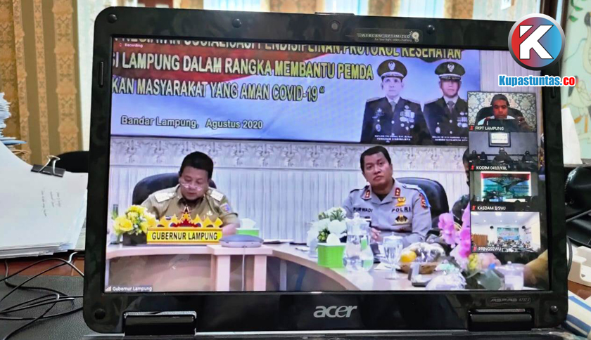 Acara Webinar yang diinisiasi Korem 043 Garuda Hitam dan diikuti oleh Forkopimda Provinsi Lampung bersama Kepala Daerah Kabupaten/Kota se-Lampung, Senin (3/8/2020). Foto: DHS/Kupastuntas.co