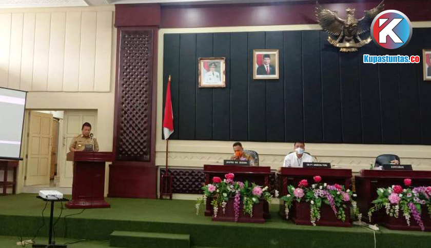 Gubernur Arinal saat memaparkan hasil kunjungan Menteri Perhubungan, BUMN, Pariwisata, Koperasi dan UMK kepada awak media di gedung Pusiban lingkungan kantor Gubernur Lampung, Selasa (4/8/2020). Foto: Siti Khoiriah/Kupastuntas.co