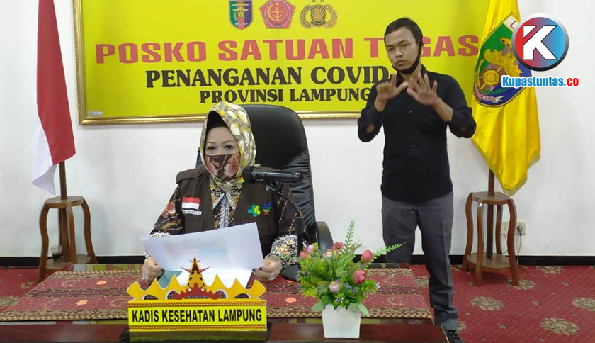 Juru bicara satuan tugas penanganan Covid-19 Provinsi Lampung, Reihana, saat memberikan keterangan di posko satuan tugas penanganan Covid-19 gedung Balai Keratun, lingkungan kantor Pemprov Lampung. Foto: Doc/Kupastuntas.co