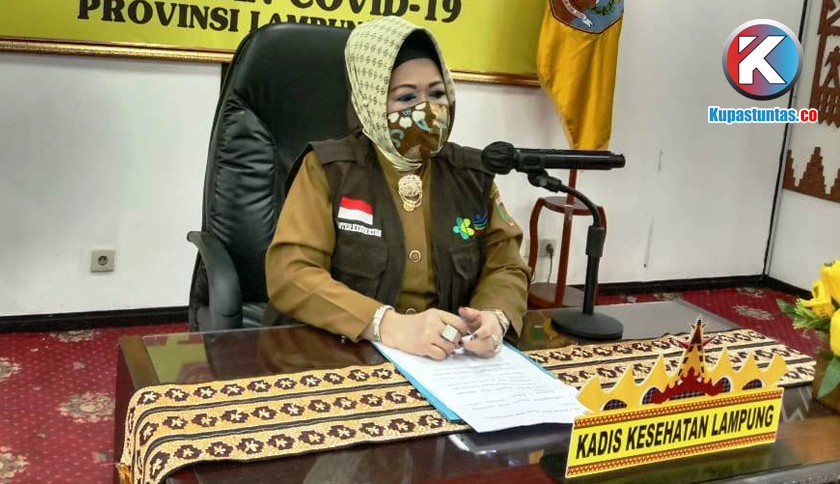 Juru bicara posko penanganan Covid-19 Provinsi Lampung, Reihana, saat memberikan keterangan di posko Covid-19 di ruang Abung gedung Balai Keratun, Selasa (18/8/2020). Foto: Siti/Kupastuntas.co