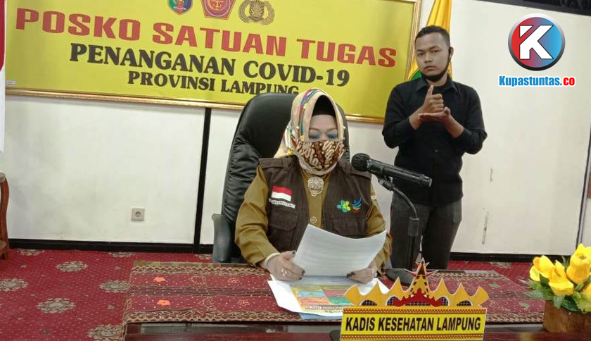 Juru bicara posko satuan tugas penanganan Covid-19 Provinsi Lampung, Reihana saat memberikan keterangan, Senin (31/8/2020). Foto: Siti/Kupastuntas.co