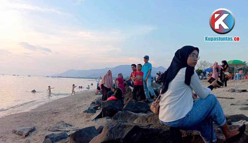 Wisatawan ramai mengunjungi pantai Sebalang yang terletak di Desa Tarahan Kecamatan Katibung Kabupaten Lampung Selatan. Foto : Doc.Kupastuntas.co