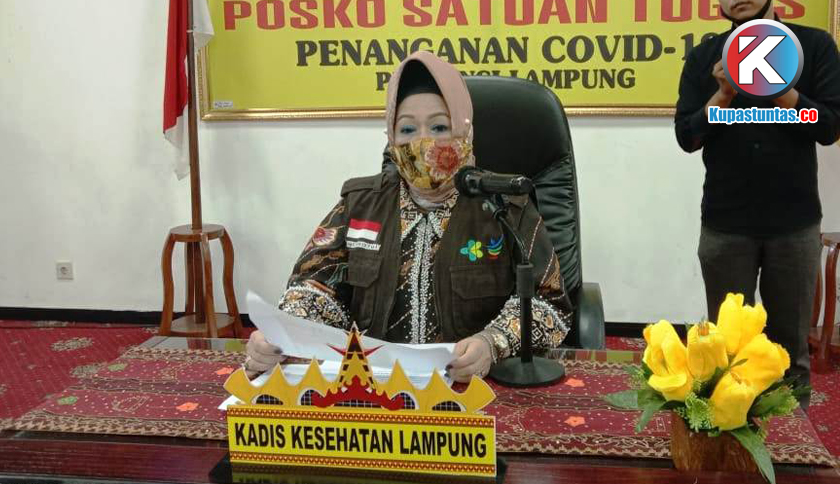 Juru bicara posko posko satuan tugas penanganan Covid-19 Provinsi Lampung, Reihana saat memberikan keterangan. Foto: Ria/Kupastuntas.co