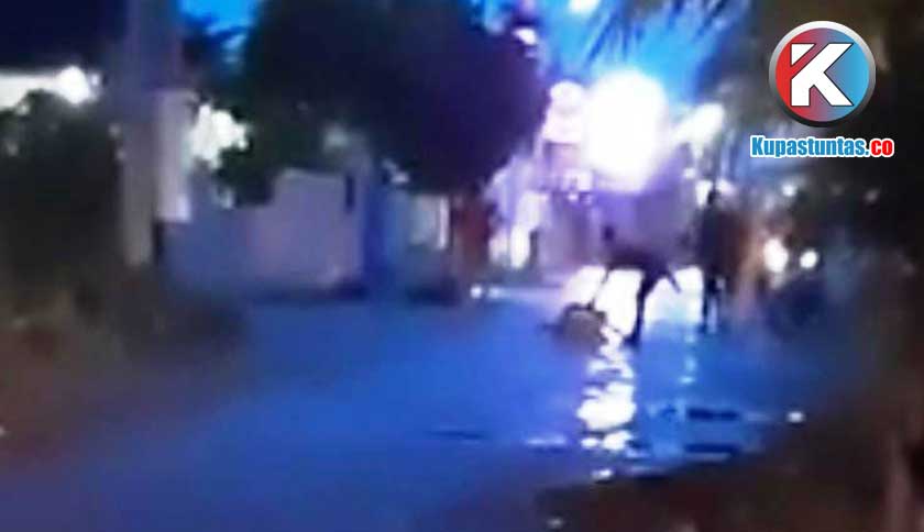 Berdasarkan rekaman video yang diterima Kupastuntas.co, tampak terlihat terduga pelaku berjalan tertatih-tatih sambil dipegang petugas.