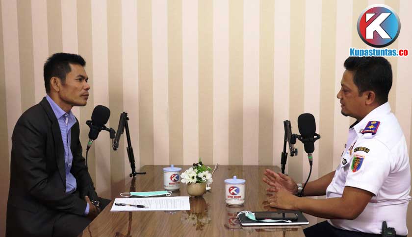 Kepala Dinas Perhubungan Provinsi Lampung, Bambang Sumbogo saat menjadi narasumber di program talkshow KupasTV dengan tema ‘Menjaga Arus Mudik Nataru di Masa Pandemi’ yang dipandu oleh CEO Kupas Tuntas Grup Donal Harris Sihotang. Foto: Reza/Kupastuntas.co