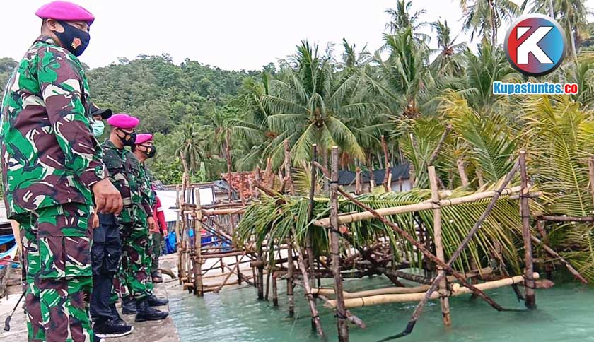 Brigade Infanteri (Brigif) 4 Mar/BS bersama Universitas Teknokrat Indonesia saat memberikan bantuan berupa rumpon atau rumah ikan buatan dan pembagian 100 paket sembako, bagi masyarakat Desa Siuncal, Pulau Legundi, Punduh Pidada, Kabupaten Pesawaran. Foto: Sri/Kupastuntas.co