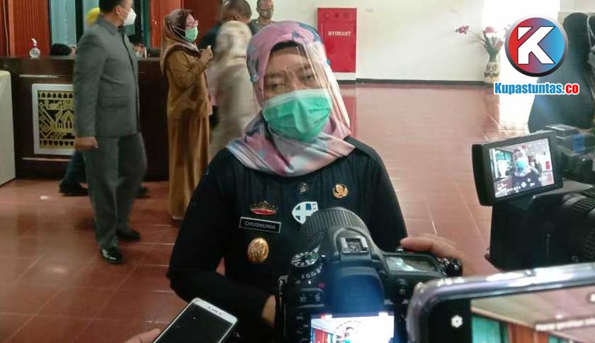 Wakil Gubernur Lampung, Chusnunia Chalim (Nunik) saat dimintai keterangan usai menghadiri rapat Paripurna bersama DPRD Lampung, Senin (14/12/2020). Foto: Sri/Kupastuntas.co