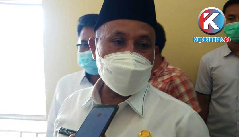 Bupati Lamsel, Nanang Ermanto, saat memberikan keterangan, usai Rapat Koordinasi (Rakor) bersama pejabat di lingkungan Pemkab setempat, Rabu (16/12/2020). Foto: Imanuel/Kupastuntas.co