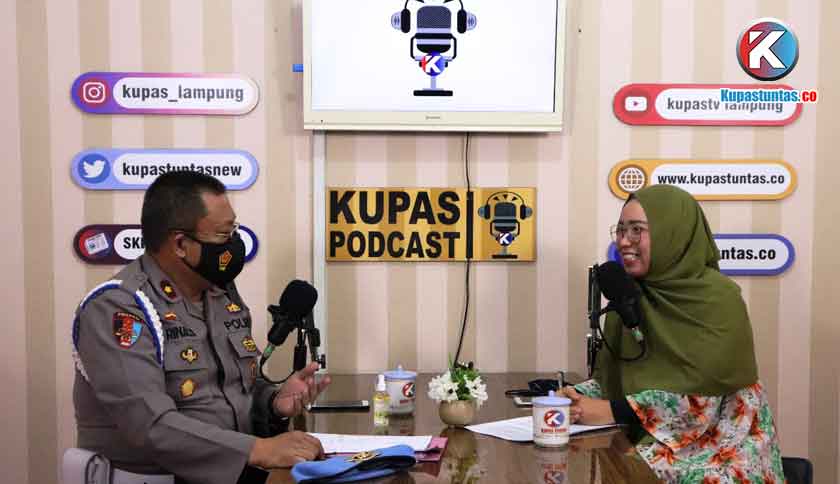 Kasubbdidprovos Bidpropam Polda Lampung, Kompol Dr. Rinaldi Eka Saputra, S.H., M.H saat menjadi dalam acara Kupas Podcast yang bertemakan Penegakan Disiplin di Lingkungan Polda Lampung, dengan presenter Reny Agustina, di kantor SKH Kupas Tuntas, Jumat (18/12/2020). Foto: Reza/Kupastuntas.co