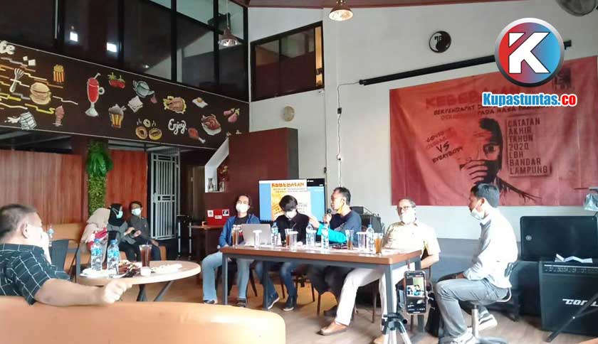 konfrensi pers tentang Catatan Akhir Tahun LBH Bandar Lampung di Tries Cafe N Resto, Selasa (29/12/2020).