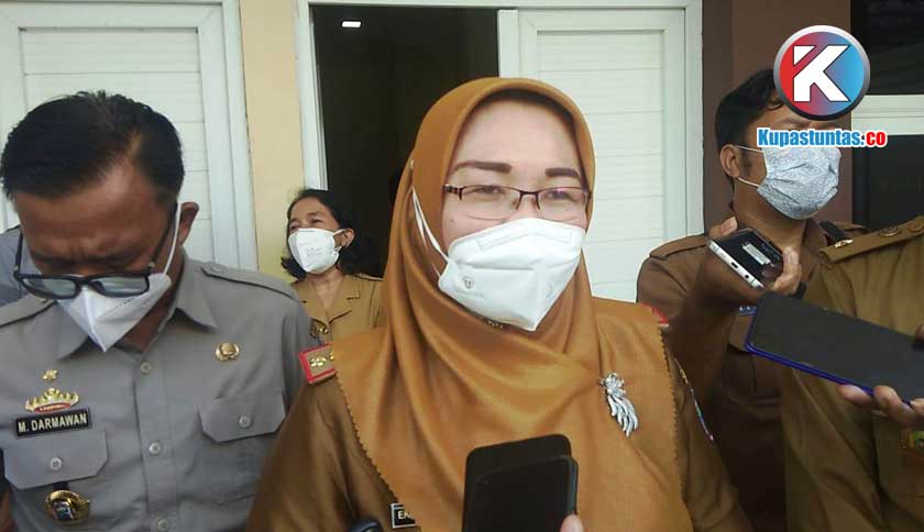 Juru Bicara Tim Satgas Penanganan Covid-19 sekaligus Plt Kepala Dinas Kesehatan Kabupaten Lamsel,Eka Riantinawati saat dimintai keterangan. Foto : Imanuel/Kupastuntas.co