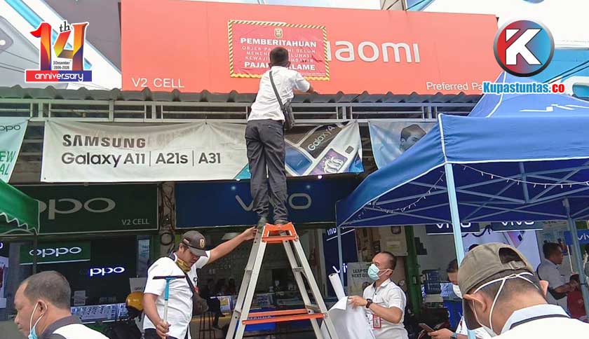 Badan Pengelolaan Pajak dan Retribusi Daerah (BPPRD) Kota Bandar Lampung, saat melakukan penyegelan pada reklame yang menunggak pajak, Rabu (13/1/2021). Foto: Sri/Kupastuntas.co