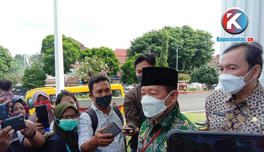 Walikota Bandar Lampung, Herman HN saat dimintai keterangan usai meninjau proses vaksinasi perdana di kantor pemerintah setempat, Jumat (15/1/2021). Foto : Sri/Kupastuntas.co
