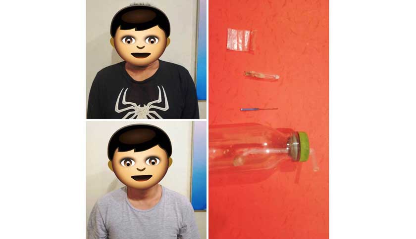 Kedua tersangka berikut barang bukti sepaket sabu sisa pakai dan seperangkat alat hisap sabu atau bong. Foto : Ist.