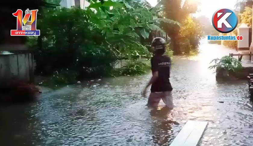 Banjir setinggi lutut orang dewasa tersebut terjadi lantaran pemukiman warga yang dekat dengan drainase. Sehingga volume air tak bisa menahan derasnya air yang mengalir.