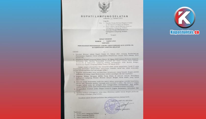 Surat edaran pemkab Lamsel. Foto: Doc/Kupastuntas.co