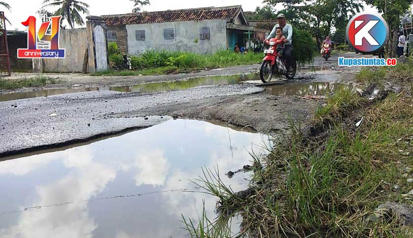 Kupastuntas.co, Lampung Selatan - Jalan sekitar Pasar Patok, tepatnya dekat Tugu Patok, Desa Sidoharjo Kecamatan Way Panji, Lampung Selatan (Lamsel) kondisinya sangat rusak parah dan memprihatinkan.