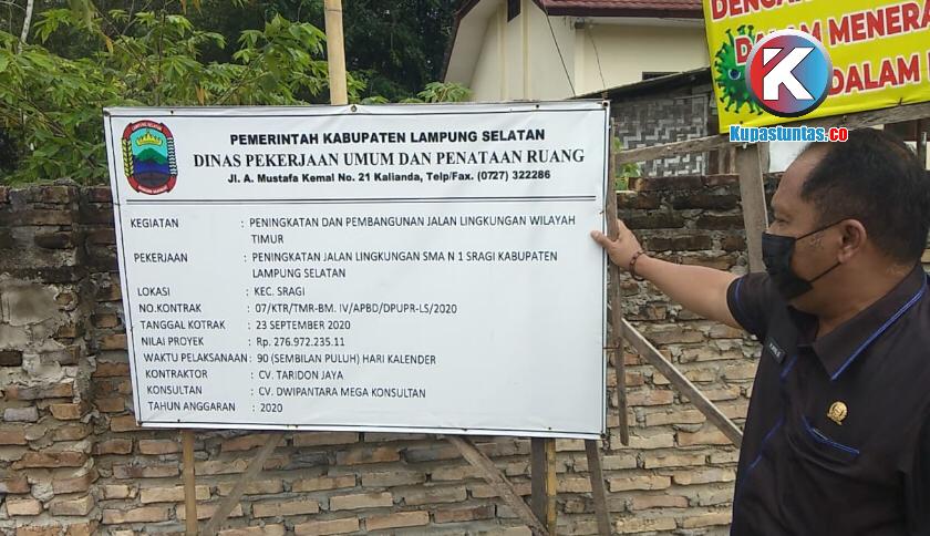 Kupastuntas.co, Lampung Selatan - Proyek peningkatan jalan lingkungan SMAN I Sragi, Kecamatan Sragi, Kabupaten Lampung Selatan (Lamsel) yang menghabiskan anggaran sebesar Rp276 juta dianggap sangat tidak memuaskan.