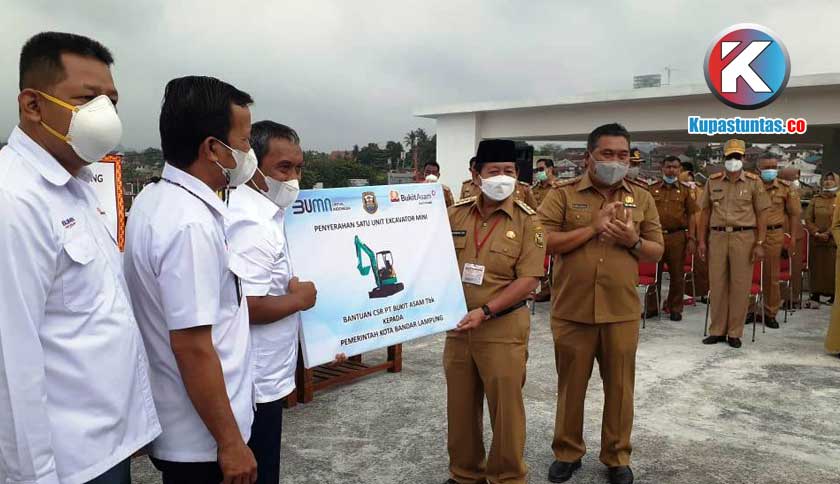 Penyerahan secara simbolik 1 unit ekskavator mini dari PT Bukit Asam kepada Pemkot Bandar Lampung. Foto : Rohmah/Kupastuntas.co