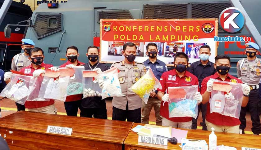 Kabid Humas Polda Lampung, Kombes Pol Zahwani Pandra Arsyad merilis perkembangan penyelidikan sementara kasus pembuangan limbah medis yang diduga dilakukan RS Urip Sumoharjo di TPA Bakung, Rabu (17/2). Foto : Oscar/Kupastuntas.co