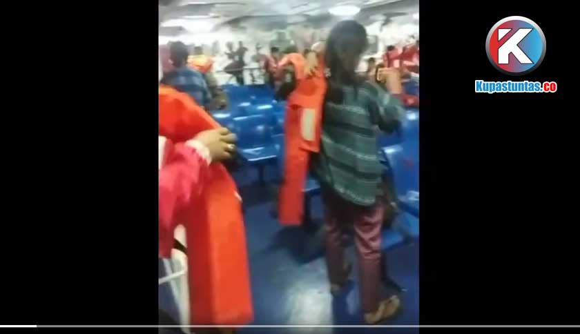 Berdasarkan video yang diterima Kupastuntas.co, akibat kejadian tersebut, para penumpang kapal mengalami kepanikan dan langsung mengenakan jaket pelampung.