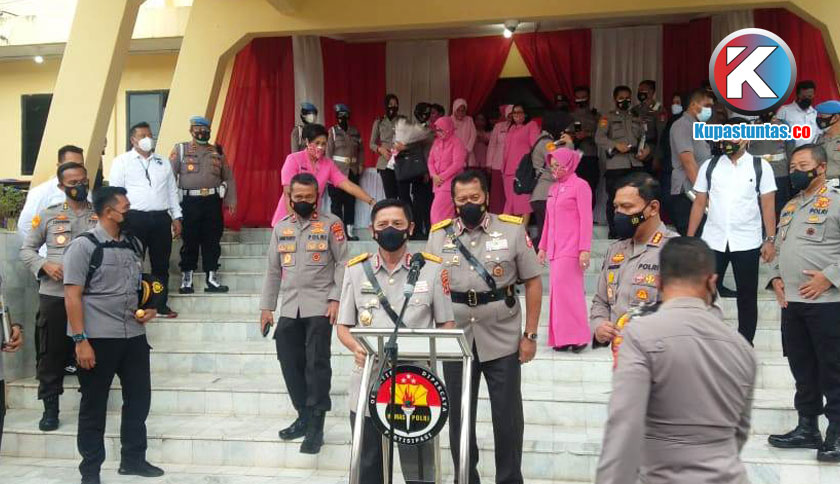 Kupastuntas.co, Bandar Lampung - Setalah serah terima jabatan (Sertijab) dan Pataka, Kapolda Lampung, Irjen.Pol.Hendro Sugiatno melakukan konferensi pers di depan Graha Wiyono Siregar, Sabtu (6/3/2021).