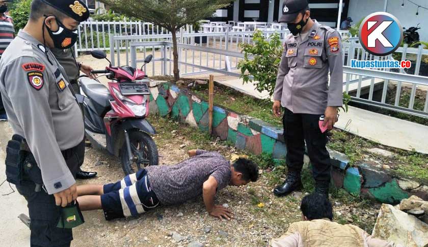 Petugas saat memberi sanksi push up kepada pelanggar protokol kesehata. Foto: Ist.