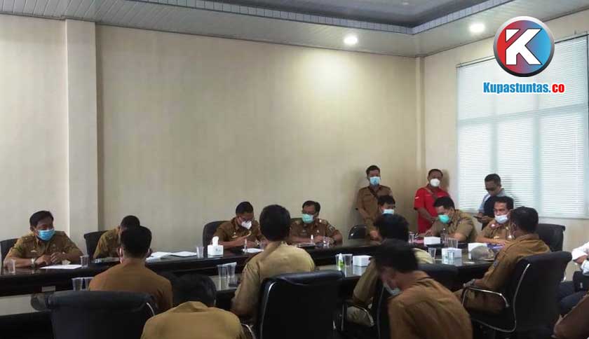 Perwakilan kades dan perangkat desa saat disambut oleh Sekda Kabupaten Lamsel Thamrin. Foto: Imanuel/Kupastuntas.co